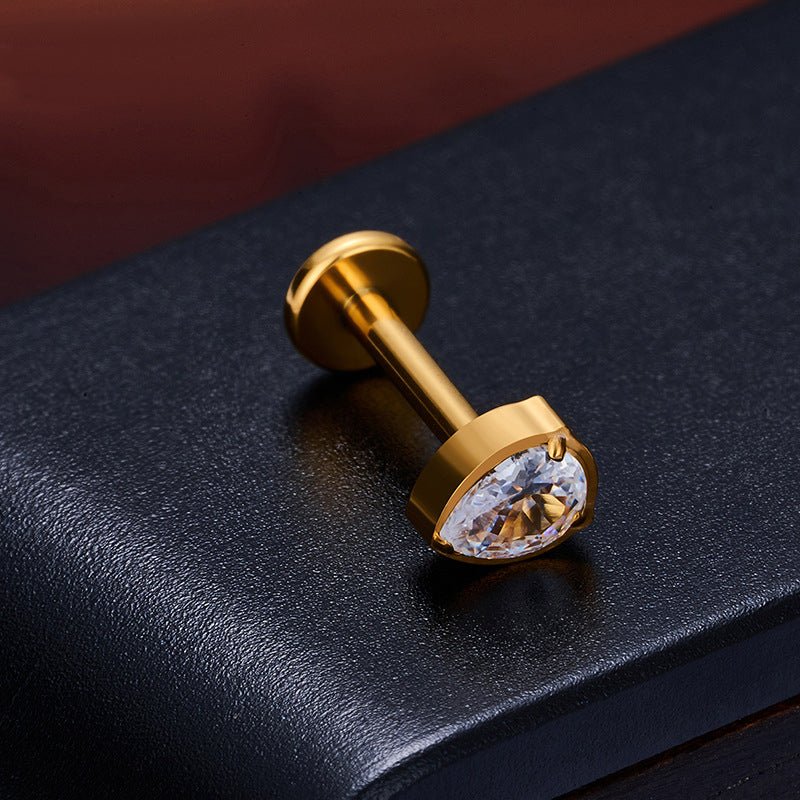 • Design: Classic piercing with a prominent center stone